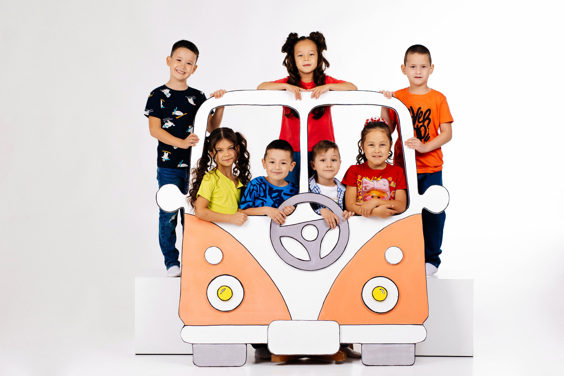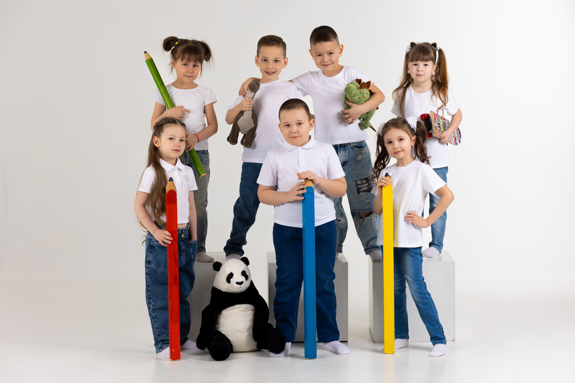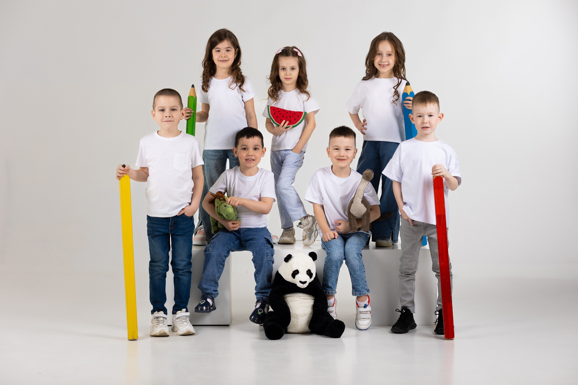 — Детки в кубиках с подписанными именами и фамилиями в свободной яркой одежде
