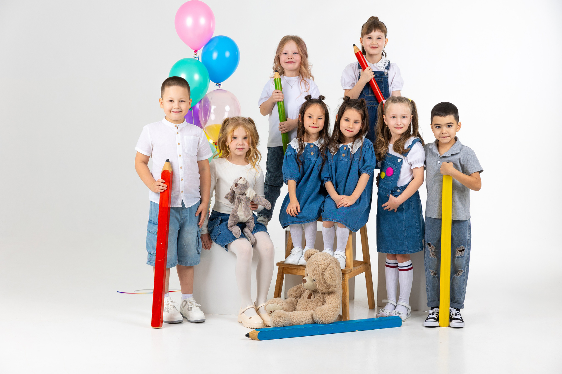 Два образа у деток (портрет нарядная одежда и групповое фото тематическая одежда, обсуждается родителями)